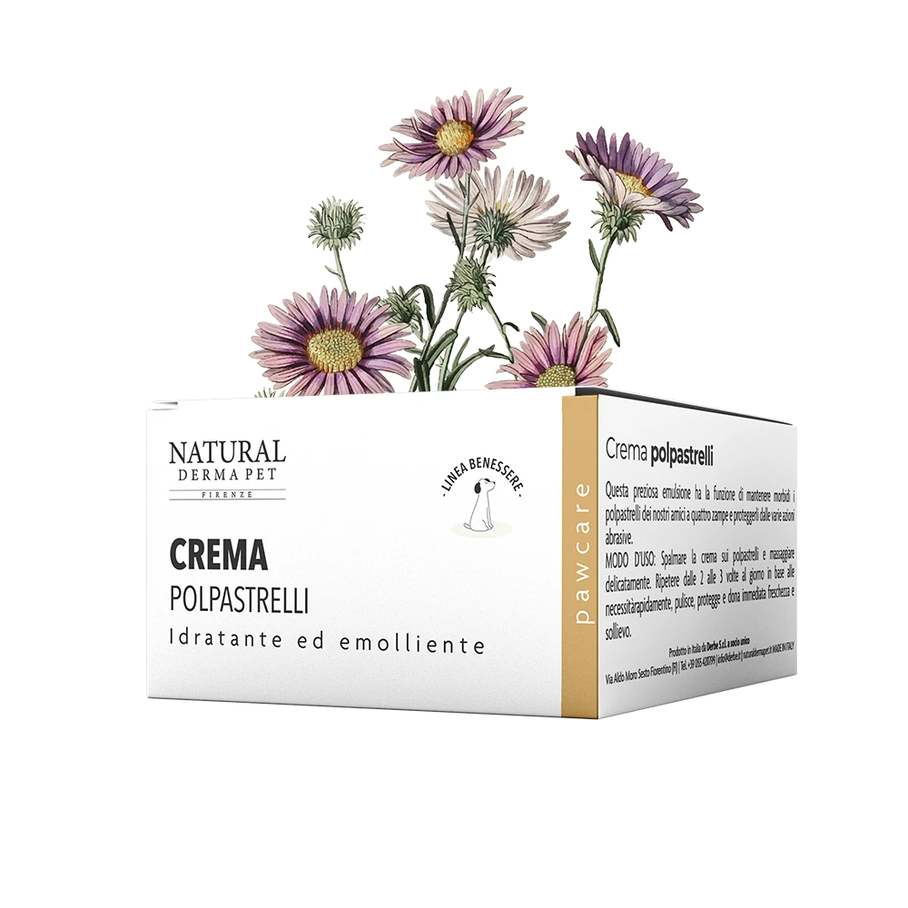 Crema dermoprotettiva per polpastrelli di cani e gatti studiata per mantenere morbidi e protetti i cuscinetti plantari, contrastando secchezza, screpolature e irritazioni. The formula nutriente è arricchita con estratto di Echinacea, che favorisce il rinnovamento dei tessuti, e Camomilla from the properties lenitive ed emollienti. Gli oli essenziali di Limone, Lavanda e Geranio svolgono un’azione purifying and rebalancing, mentre olio di Mandorle dolci, acqua di Rosa e Hamamelis idratano, tonificano e donano sollievo immediato. Fin dalla prima applicazione, i polpastrelli risultano più morbidi, elastici e protetti.