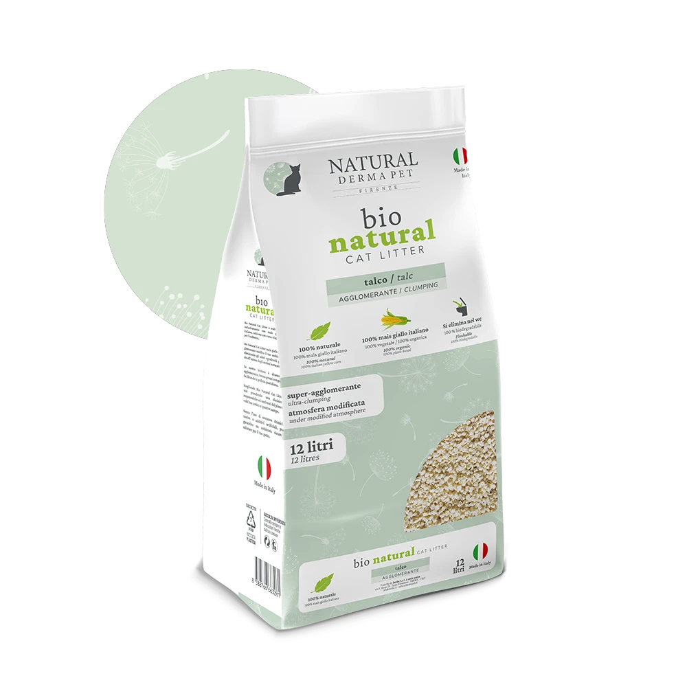 Bio Natural Cat Litter è realizzata con mais giallo italiano, coltivato con cura e rispetto per l’ambiente, studiata per  sanificare il tuo ambiente eliminando gli odori sgradevoli grazie all’azione degli enzimi naturali.