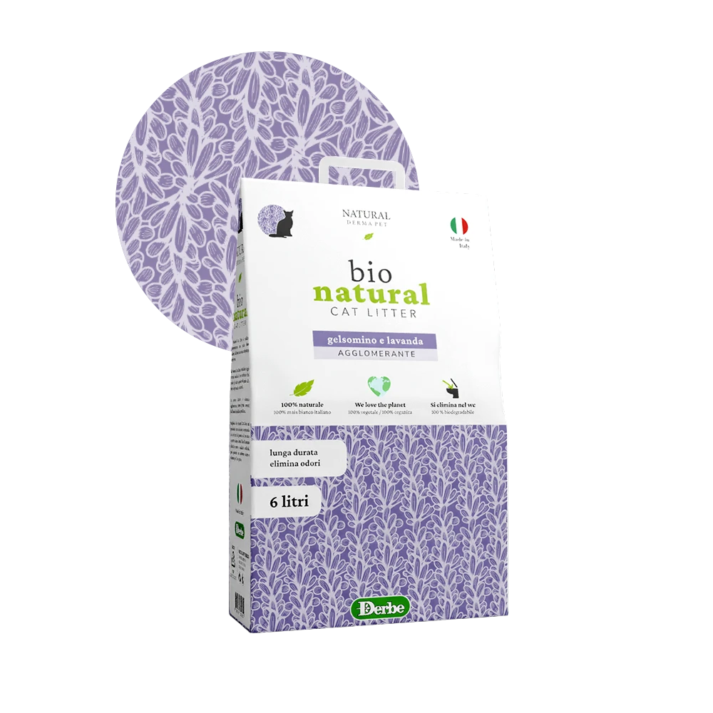 La lettiera naturale al Gelsomino e Lavanda Natural Derma Pet è composta da national corn grain. La variante profumata al Gelsomino e Lavanda rilascia nell’ambiente un piacevole aroma floreale.