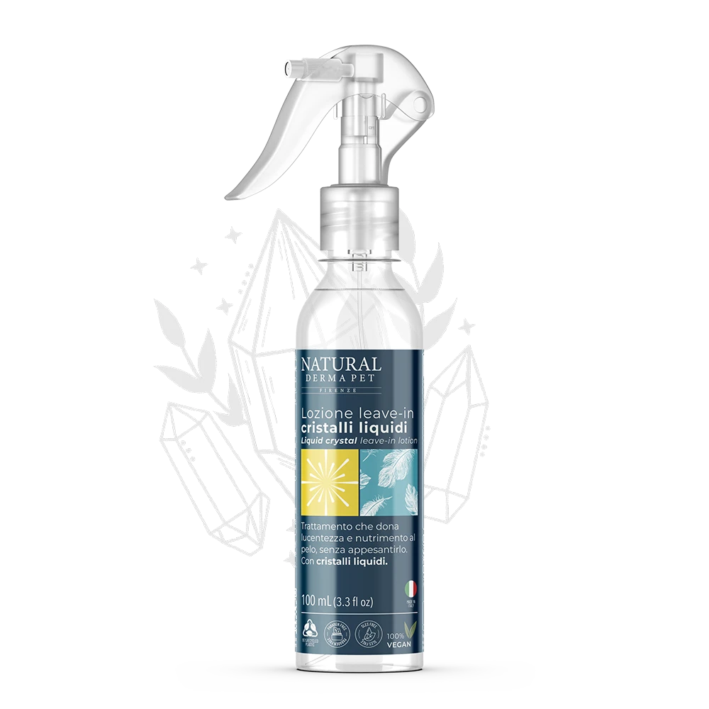 Lozione ai Cristalli Liquidi per cani, trattamento professionale ideale per tutti i tipi di pelo. La formula nutrienteripristina la lucentezza naturale e rende il manto morbido e setoso. Grazie all’azione dei cristalli liquidi, districa facilmente anche i nodi più ostinati, aiutando a prevenirne la formazione e a ridurre i tempi di toelettatura. Non unge e non appesantisce, è perfetta per rifinire il lavoro di toelettatura, donando un effetto brillantezza immediato e duraturo. Ipoallergenica e sicura, è il tocco finale per un risultato impeccabile su tutte le razze.