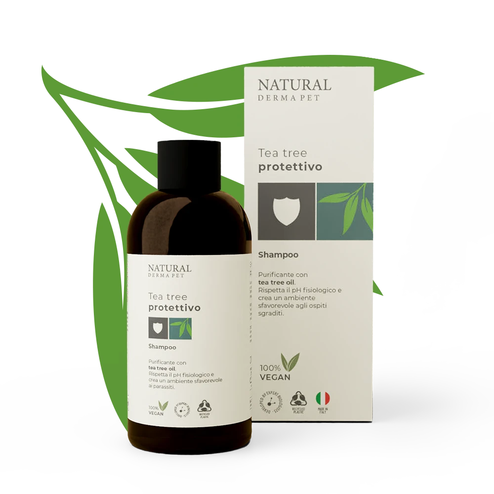 The Tea Tree Oil, essential oil with well-known properties purifying and protective, contributes to creating an unfavorable environment for the settlement of parasites, leaving the fur soft, shiny and healthy. Formula without parabens, silicones and colorants, also ideal for frequent washing.