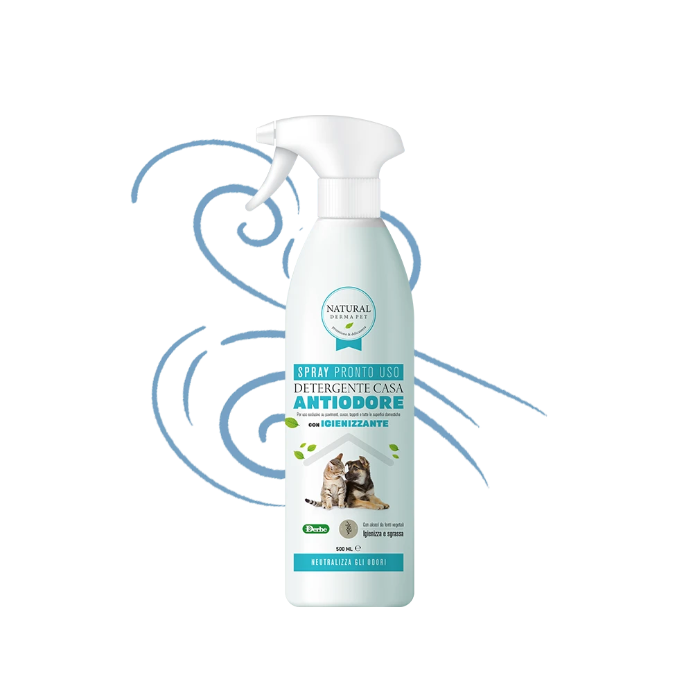 Questo detergente spray antiodore è formulato per eliminare in modo efficace e immediato i cattivi odori causati dalla presenza dei nostri animali. La sua azione mirata neutralizza le molecole responsabili dei cattivi odori, lasciando l’ambiente fresco, pulito e piacevolmente profumato. Oltre all’effetto antiodore, garantisce una detergenza profonda su tutte le superfici e gli oggetti di uso quotidiano: pavimenti, cucce, lettiere, gabbie, voliere, tappeti e superfici in vetro, plastica, metallo o legno. Perfetto per mantenere la casa igienizzata e accogliente, anche in presenza di animali.