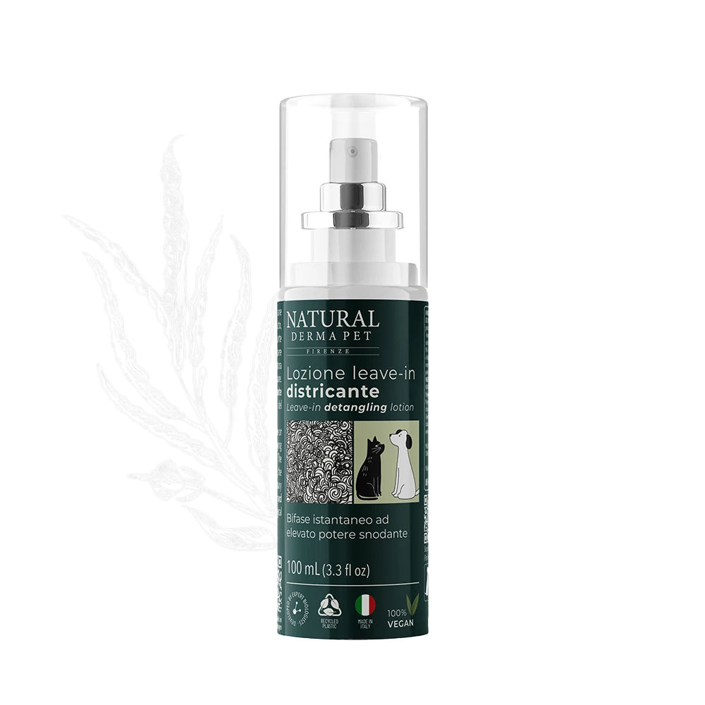 Lozione leave-in districante bifasica per cani ad azione istantanea, ideale per facilitare la spazzolatura e lo stripping del pelo. Il bifase ad elevato potere snodante districa efficacemente, dona lucentezza e nutrimento e può essere utilizzato anche in fase di asciugatura, poiché non necessita di risciacquo. Arricchita con Pantenolo (provitamina B5)dall’azione idratante e riparatrice, Estratto di China dalle proprietà sebo-riequilibranti e tonificanti ed Estratto di Miglio con effetto emolliente e nutriente, lascia il pelo morbido, luminoso e facile da pettinare.
